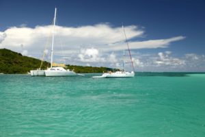 Segelkatamarane in den Tobago Cays, Grenadine Islands